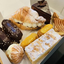 I walked 1 mile to this shop, totally worth it! So many choices of fancy pastries. After enjoying this yummy delicious cream puff, I am going to get more to take back to my son and his girlfriend. Cream puff $2.50 Meringue $2.50 Filled croissant $7 Enjoy your sweet dessert y'all!